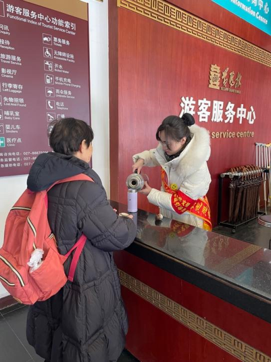 旅游管理专业教师在黄鹤楼游客服务中心为游客提供服务