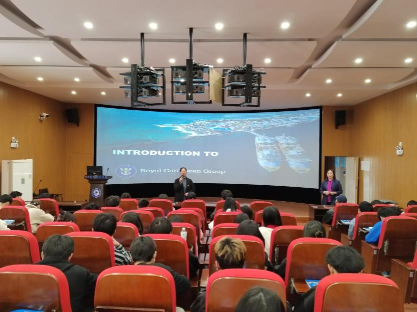在交流座谈会上,苏枫代表学院对天津海运职业学院雷老师表示热烈欢迎,并从学院国际邮轮乘务管理专业建设成果、学生实习就业、师资队伍等方面进行了介绍。雷老师重点介绍了天津海运职业学院国际邮轮乘务管理专业发展情况,并向学生详细讲解了皇家加勒比游轮公司企业文化、招聘计划、该培训中心提供的培训内容等,现场回答了同学们提出的问题。