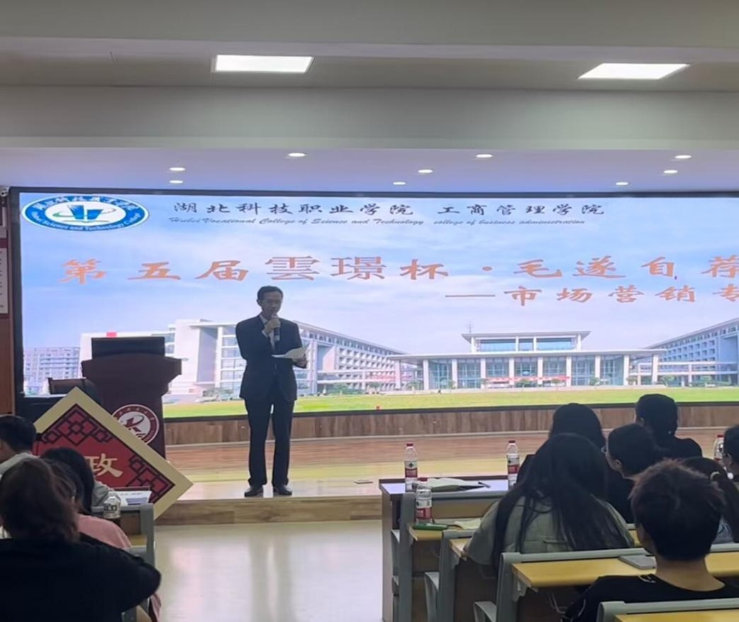 本网讯(文/图:贾丽洁 张芳瑜 校对:廖可贵 审核:秦琴)2023年10月,由工商管理学院市场营销专业协会主办,武汉雲璟花园餐厅承办的“雲璟”杯毛遂自荐大赛完美落幕。湖北科技职业学院教务处、校企合作处处长夏学文教授、工商管理学院院长苏枫教授、工商管理学院副院长秦琴、雲璟花园餐厅总经理曾迪女士莅临决赛现场,工商管理学院教学管理人员及市场营销专业师生们参加了本次活动。