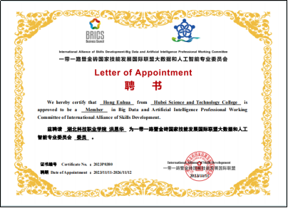 本网讯(通讯员 洪恩华 文/图)11月12日,一带一路暨金砖国家技能发展国际联盟大数据和人工智能专业委员会成立大会暨技能发展与技术创新大讲堂在厦门举办。我校获批为“一带一路暨金砖国家技能发展国际联盟大数据和人工智能专业委员会”委员单位,我校工商管理学院专任教师洪恩华被聘请为大数据和人工智能专业委员会委员。