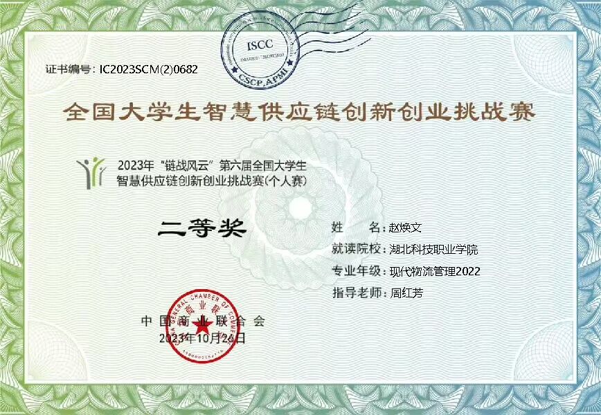 本网讯(通讯员 周红芳 文/图)10月22日,2023年“链战风云”第六届全国大学生智慧供应链创新创业挑战赛(个人赛)在线上举行。该赛事分团体赛和个人赛,团体赛于已于今年5月举办。个人赛于今年9月份正式启动。工商管理学院现代物流管理专业三名学生参与竞赛,最终取得了全国二等奖2项和三等奖1项的好成绩。