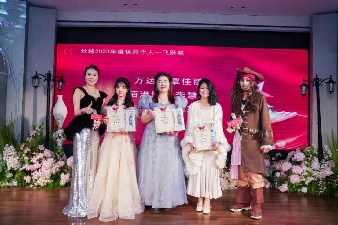 丝域养发集团武汉分中心年会表彰图(左一:武汉分中心周总 左二:覃佳丽)