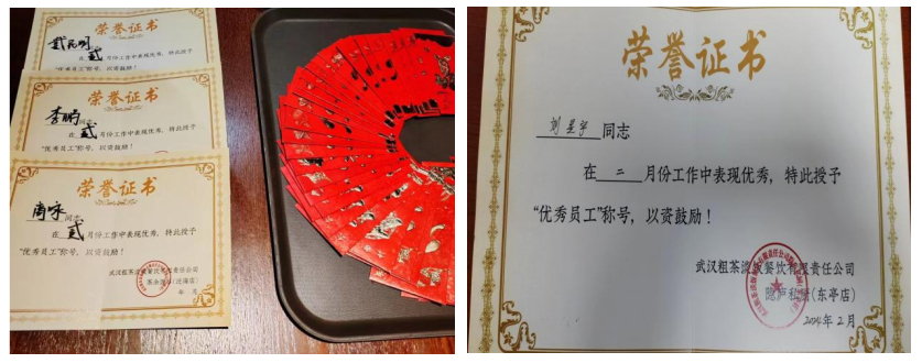 据企业反馈,商咏在粗茶淡饭泛海店任职值台员岗位,主要负责中餐大厅包房服务,该实习生在2月份分管大众点评工作,月好评条数超额完成。刘星宇在粗茶淡饭东亭隐庐店任职值台员岗位。他们俩做完自己工作以后,都能主动协助他人完成餐前准备工作,餐尾协助传菜部收市,春节年饭接待工作突出,主动加班,工作表现得到领导及其他同事一致认可,他俩同时被评选为优秀员工。