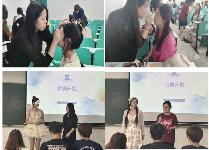 4月28日,工商管理学院礼仪队举办了“你好,美丽”美妆比赛。 通过“一站式”学生社区的宣传报名,共有20余组队伍进入决赛。决赛通过设定妆容主题,两人一组,一人为模特,一人为化妆师,配合完成妆容设计、服装搭配。在比赛过程中,评委对参赛者的配合默契度、桌主题契合度以及成果展示情况进行评分,最终综合得分选出优胜者。