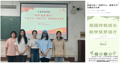 学院组织举办了“助学 筑梦 铸人”——知恩于心·感恩于行主题获奖征文分享回。此次活动采取一站式社区线下分享的形式,5名获奖学生诉说了自身真挚的受助经历,传递了温暖人心的力量,饱含了对国家和社会的诚挚谢意。学生们纷纷表示,正是对知恩图报的执着信念,让她们更加珍视学习的机遇,努力提升个人能力,以迸涌激情回馈社会。为进一步扩大分享影响,学院已在线上平台发布这5篇优秀征文,与更多人分享她们的励志故事。