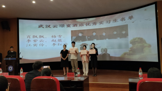 2021级酒店管理与数字化运营专业选择集中实习方式的共36名同学,25人在学院安排的四家企业已完成六个月的岗位实习,其中8名同学被合作企业评为本年度优秀实习生并留任转为企业正式员工,得到用人单位的高度肯定。武汉世茂希尔顿实习生唐依婷同学作为优秀实习生代表上台分享了半年实习期的成长经历,鼓励学弟学妹们珍惜实习机会,将在校阶段学习的理论知识灵活运用于工作实践,实现优质就业。