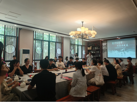 学院茶酒协会的同学首先用精彩的茶艺展示为校友们带来了传统文化的体验;随后,学院院长苏枫对校友们的到来表示热烈欢迎,并对学院近几年的快速发展进行了介绍。黄晨雨老师代表校友会办公室热烈欢迎学院校友回母校团聚,并邀请校友们为学校的发展建言献策;学院副院长秦琴围绕学院近期工作和活动发起倡议,呼吁校友们多参与“互联网+”等创新创业比赛,助推双创工作成效。