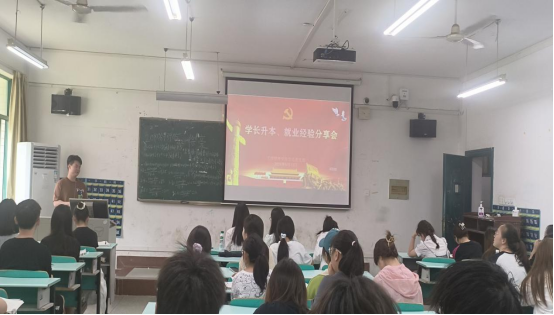 在5208会议室,校友王鑫、廖弘胤结合自己的参军入伍和专升本经历,先后向学弟学妹们传授了简历制作、面试技巧、职业规划、升学考研等方面的经验和心得。他们鼓励大家敢于尝试、勇于面对挑战,同时注意自身能力的提升和积累。