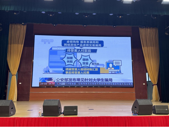 10月14日,学院联合武汉市公安局东湖新技术开发区分局、保卫处举办了防诈骗专题讲座。刘晓琦警长结合近年来网络诈骗趋势,常见诈骗类型以及防范措施,详细分析了电信网络诈骗的手段和影响。通过安全讲座,学生更深入地了解了诈骗犯罪的残酷性和危害性,进一步提升了防范意识。