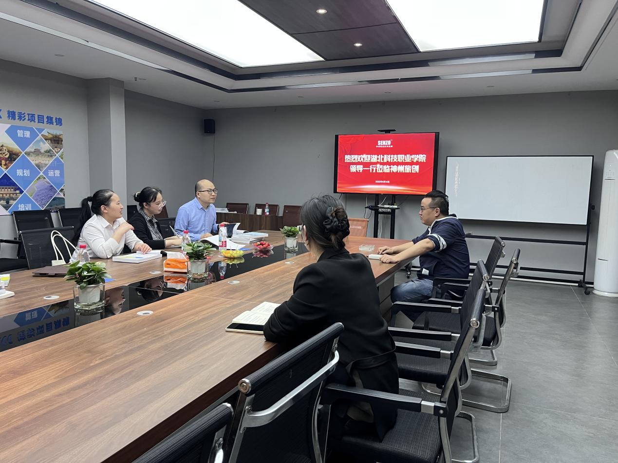 本网讯(通讯员 杨国丽 文/图)为进一步推动校企合作,探索文旅产业与职业教育深度融合路径,4月14日下午,工商管理学院党总支书记熊振、工商管理学院院长苏枫和酒店管理与数字化运营专业负责人杨国丽,走访了位于光谷创业街的武汉神州旅创文旅集团,双方座谈主要围绕校企合作、产教融合、人才培养、实训平台建设等议题展开。