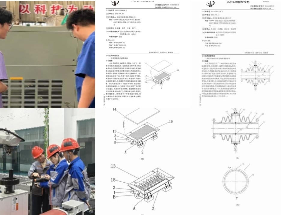 为推动杜健鑫的专利技术产业化,学校积极开展校企合作,促成与武汉麦康德等企业的深度合作。企业充分发挥在船舶制造、市场渠道等领域的资源优势,将“船用轴向双波管隔振通舱接管”“船用泵组的减震底座”两项技术应用于民用商船的泵组设备制造。截至2024年,相关产品已成功配套各种类型船舶,其中武汉麦康德将双波管隔振技术应用于新型船舶建造,显著提升舱壁管路隔振性能,产品投放市场后因其技术领先性备受行业关注。这一成果的落地,充分彰显了湖北科技职业学院 “产教融合” 办学模式的创新效能。在校企深度合作框架下,杜健鑫以项目负责人身份组建跨专业团队,汇聚工业机器人、物流管理等专业学生,实现技术研发与生产管理的协同推进。