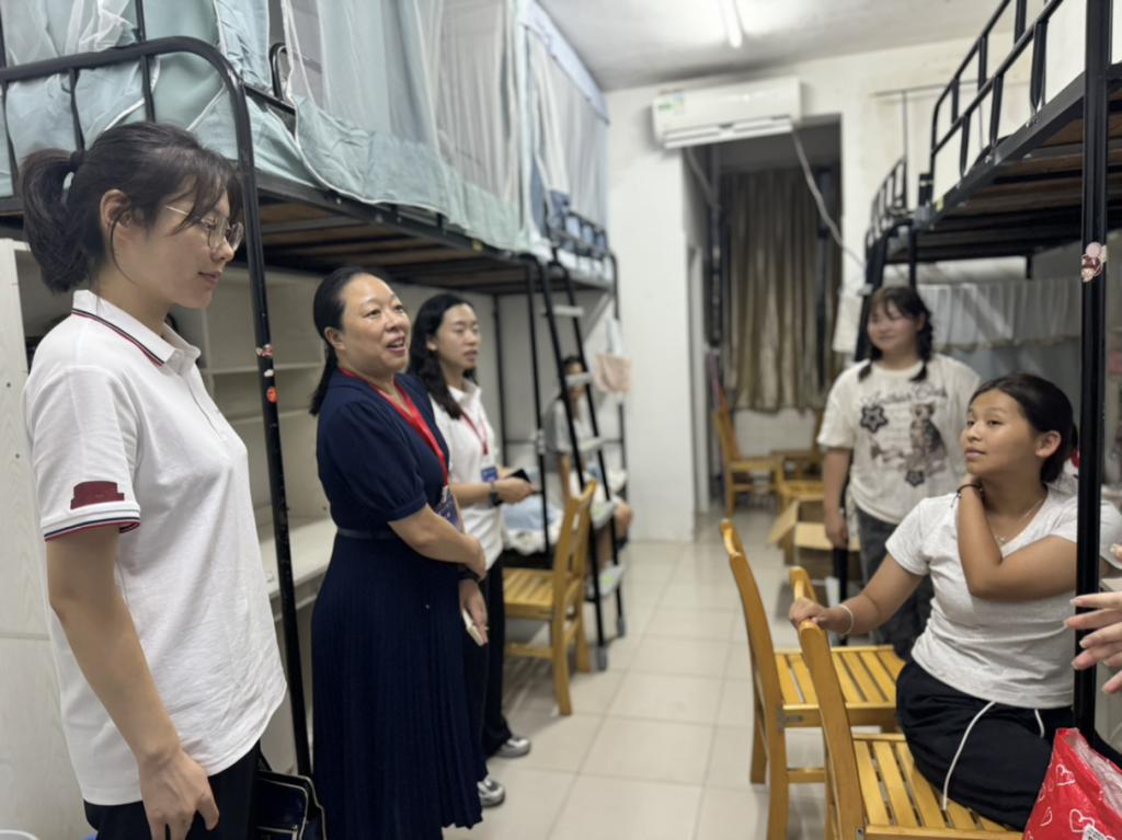 学院始终将每一位新生的成长放在心上。迎新当晚,学院院领导带队,与辅导员们一起亲切走访了新生宿舍,特别与从新疆、福建和山东等地远道而来的学生,进行了面对面交流与慰问,了解学生们到校的适应情况,并积极解答学生们的困惑。同时,学院也沿袭传统,对“五最”(报道最早、年纪最长、年纪最小、分数最高和离家最远)的学生送上了祝福,鼓励大家勇敢面对挑战,积极融入大学生活。这份暖心关怀,让新生们感受到了家一般的温暖。