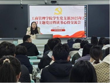 本网讯(通讯员 徐尹冉 文/图)2025年2月20日下午,工商管理学院学生党支部在6302智慧教室召开2月主题党日活动暨寒假读书心得分享会。本次活动由寿老师主持,学院党总支书记熊振、全体辅导员和2022级中共预备党员、2023级入党积极分子参加本次会议。