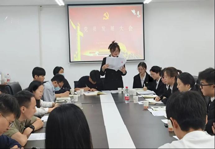 本次大会严格按照中共预备党员的发展程序进行。会议开始,学生党支部老师寿艳琨宣读会议要求,紧接着由发展对象宣读入党志愿书,重点围绕本人在培养考察期的学习心得体会,思想工作进展,以及怎样在学习、工作、生活中以共产党员的标准严格律己展开阐述。会议上,全体正式党员对发展对象进行评议和表决,经表决,10名发展对象都顺利被学生党支部接收。
