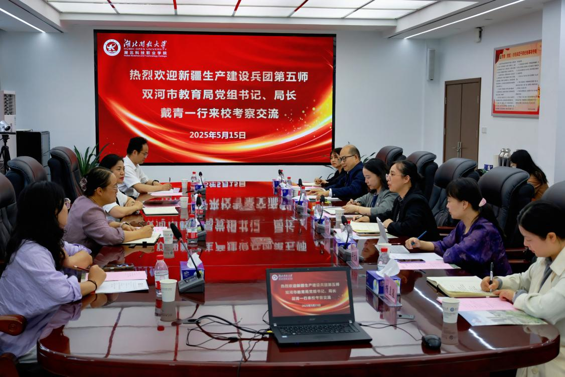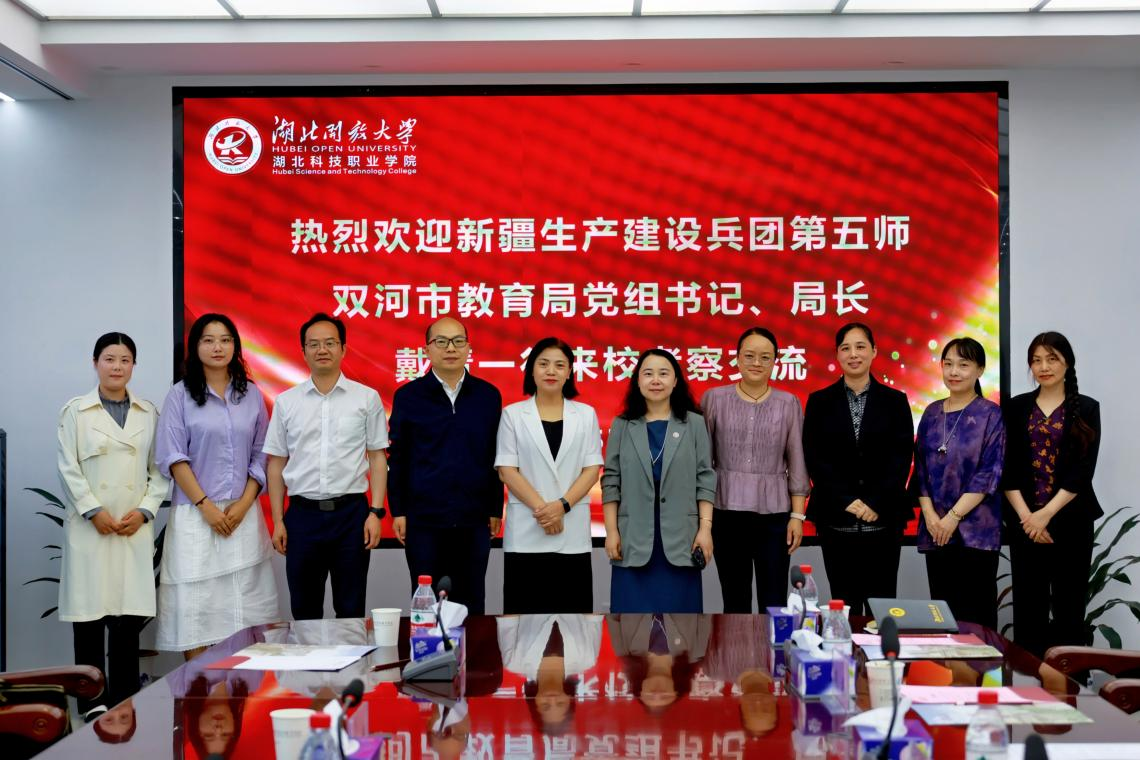 在调研座谈会上,肖潇对双河市教育局、双河职业技术学院一行表示热烈欢迎,并介绍了湖北开放大学(湖北科技职业学院)办学历史、特色优势、师资力量等。她表示,学校将深入落实中央以及湖北省委、省政府教育援疆工作要求,始终秉持开放共享理念,期待与双河市在职业教育、开放教育、师资培训、数字化资源建设等领域深化合作。