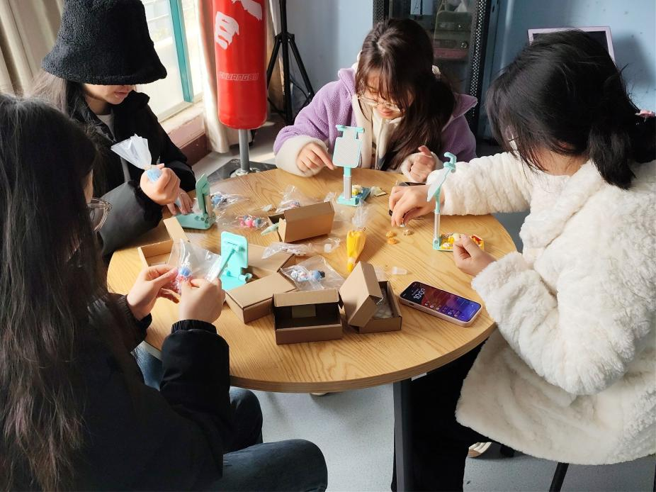 在手机架DIY现场,同学们按照自己的喜好,将奶油胶挤成各式形状,并发挥天马行空的想象力,填充上不同的创意装饰,固定上各种可爱的小配件。在半个多小时的时间里,大家认真操作,在体验手工趣味中获得满足感和成就感。