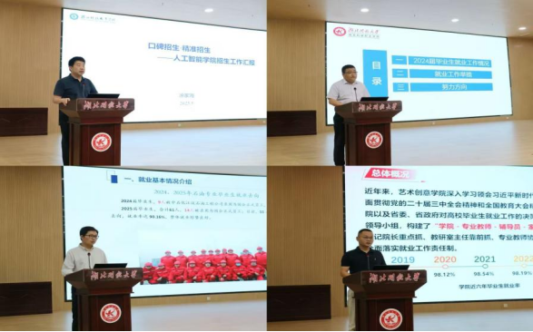 会上,人工智能学院院长涂家海、经济贸易学院党总支副书记赵欢、机电工程学院石油工程技术专业负责人付强、艺术创意学院学工办主任叶方兴作经验分享,围绕各学院在招生宣传策略优化、生源质量提升、就业市场拓展、精准就业指导服务体系建设等方面积累的宝贵经验和创新举措进行了深入交流,为全校提供了可借鉴的实践路径。
