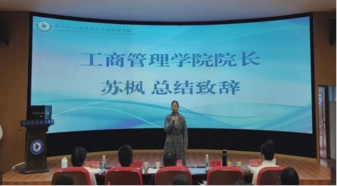 最后院长苏枫对本次选拔赛进行总结发言。苏院长高度肯定了活动的组织水平和参赛团队的表现,结合项目特点,从创新性、实用性和发展潜力等方面提出具体建议,鼓励团队注重市场适应性,将创意转化为成果,为社会发展贡献力量。